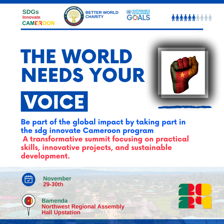 We are excited to announce the upcoming SDG Innovate Cameroon, a dynamic event aimed at tackling the pressing challenges faced by Cameroon, particularly in Bamenda, in achieving the UN Sustainable Development Goals (SDGs). Scheduled for November 29th and 30th, this two-day summit will bring together visionaries, innovators, and experts from diverse fields to discuss the obstacles and explore innovative solutions that align with the SDGs.